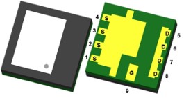 GaN-on-Silicon enhancement mode high-electron-mobility-transistor (HEMT) in En-FCLGA with 3.3 mm x 3.3 mm package size.